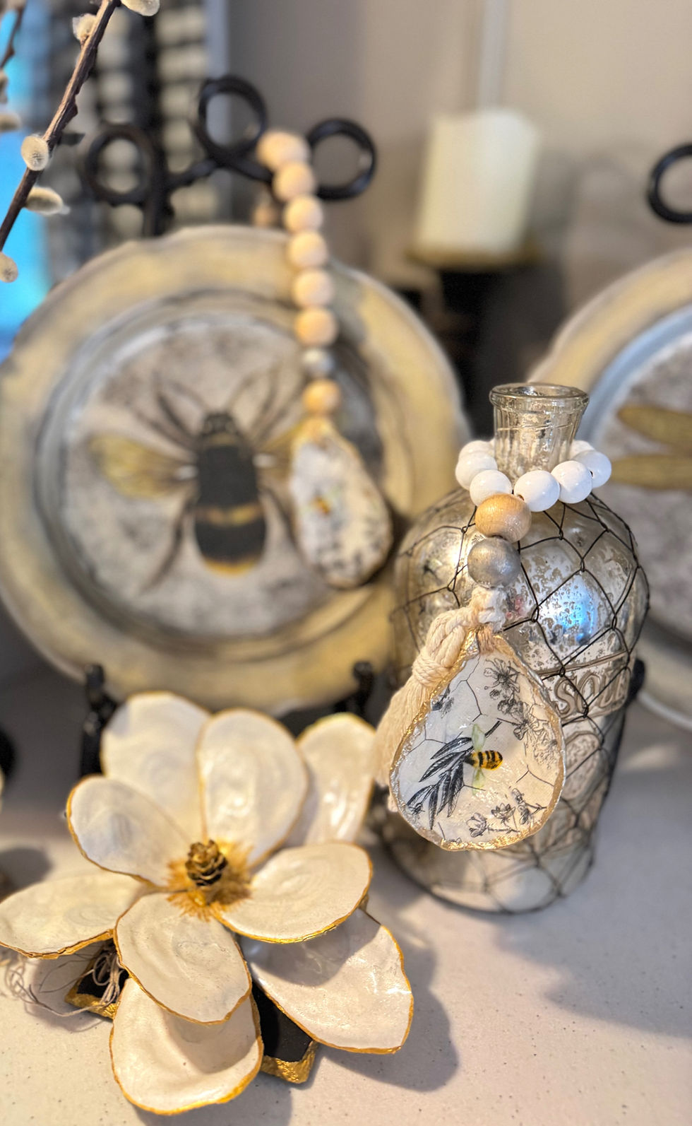 Each tree is handcrafted from natural shells—oysters finished with a soft pearl sheen and mussels with a smooth gloss. Topped with a starfish, every tree is unique and made to order. Sizes are approximate: small 8–10 in., medium 11–13 in., and large 15–17 in.